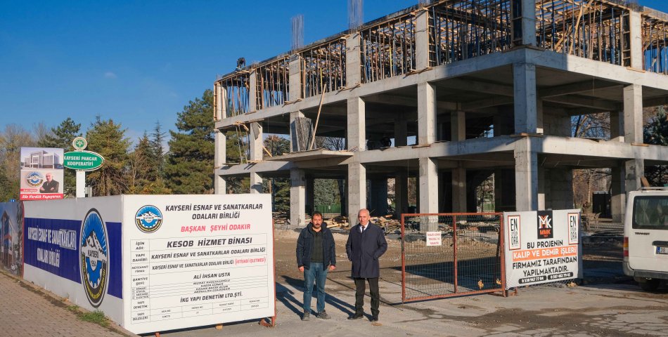 3 Ekim 2025’te protokol üyeleri, oda başkanları, esnaf ve sanatkarların katılımıyla temel atma töreni gerçekleştirilen Kayseri Esnaf ve Sanatkarlar Odaları Birliği’nin (KESOB) yeni hizmet binasının kaba inşaatı 78 günde neredeyse tamamlanma aşamasına geldi. KESOB Başkanı Şeyhi Odakır, “50 bin esnafın temsil edileceği, şehrimize yakışacak olan yeni binamızın kaba inşaatının tamamlanmasına az kaldı” diye konuştu.